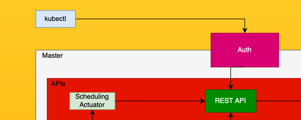 In order to interact with the cluster, kubectl issues commands to the REST API, which then utilizes the other components in the k8s infrastructure to enact the command you issued. So lets go over how that actually happens. The first thing that needs to happen before you can connect to the cluster is authorization and authentication, so first things first, we will talk about how to configure kubectl so that it can talk to your cluster.